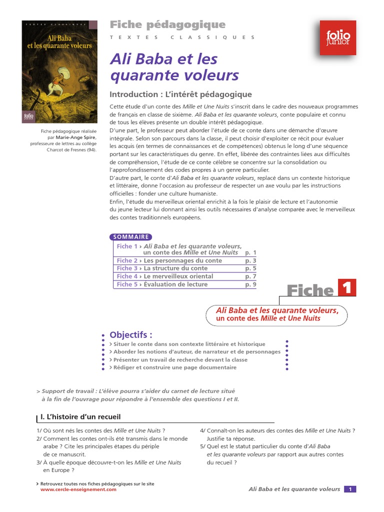 Fiche Alibaba Pdf Les Mille Et Une Nuits Pedagogie